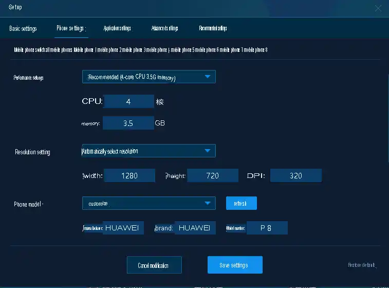 Talking about settings, most of the settings are available where you can adjust your core RAM, game resolution, and even change the device.